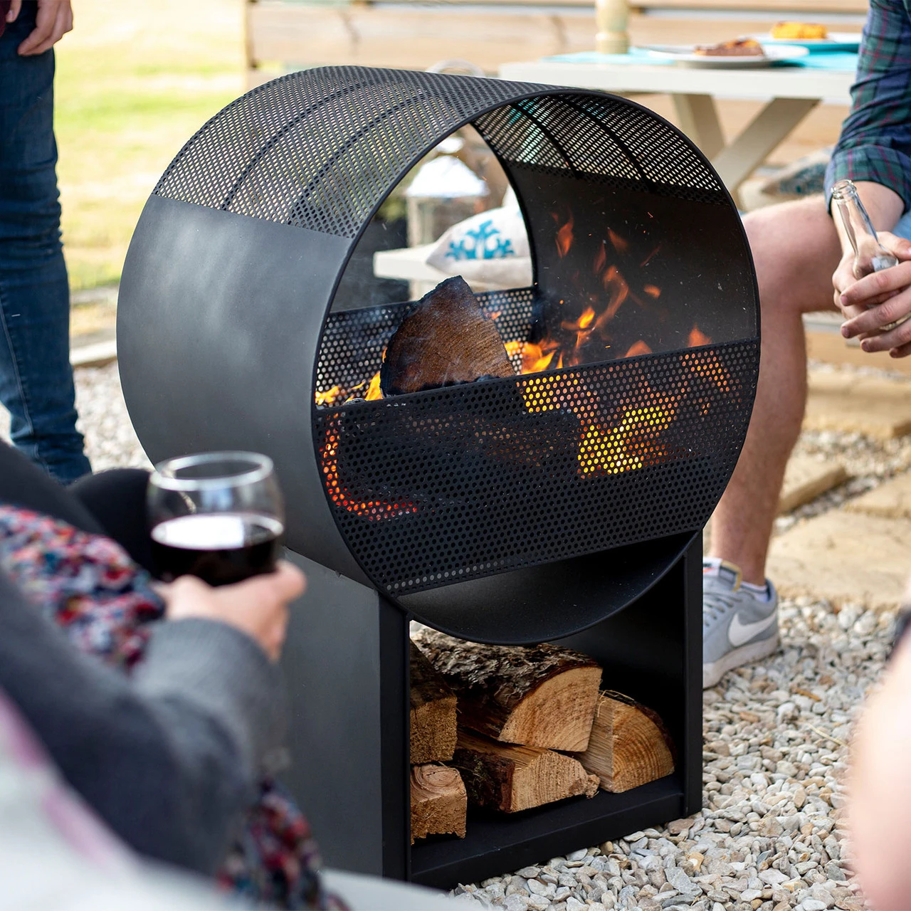 Manufactured from high grade steel, the firebasket has a tough black paint finish that is unaffected by high temperatures, and the attraction of its light and heat will inevitably prove to be the focal point of any gathering.