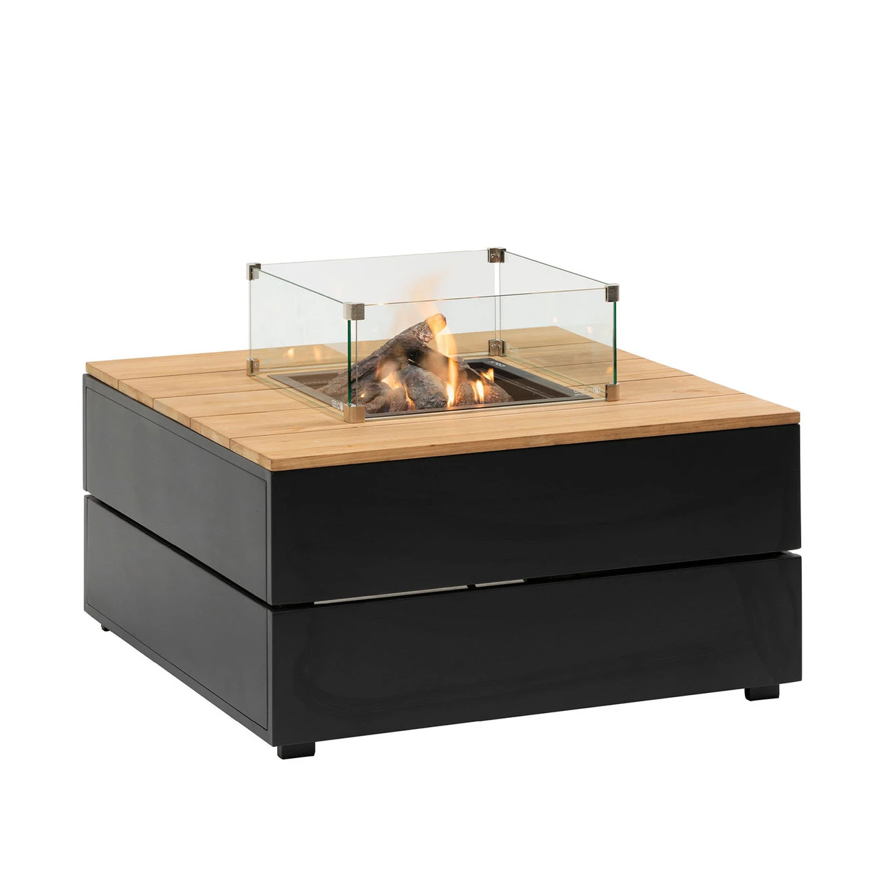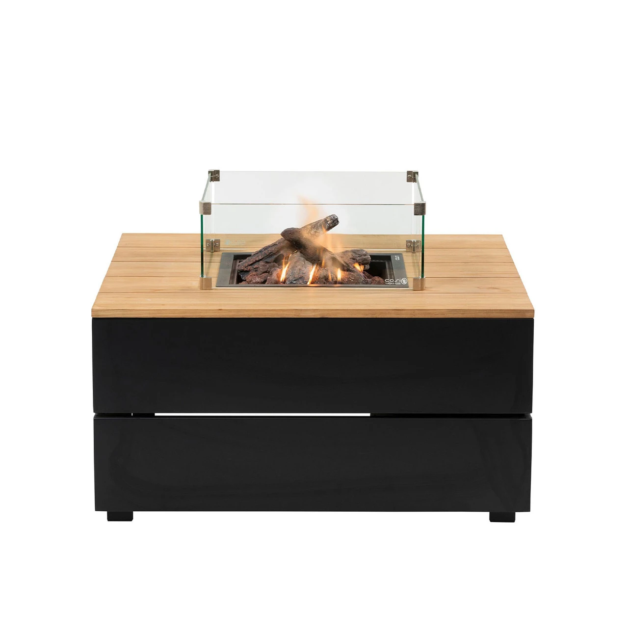 Cosipure 100 Square Fire Pit Black and Teak With Glass